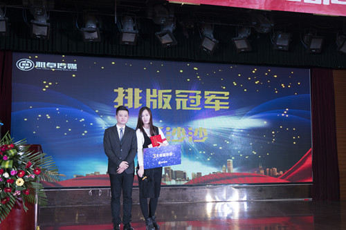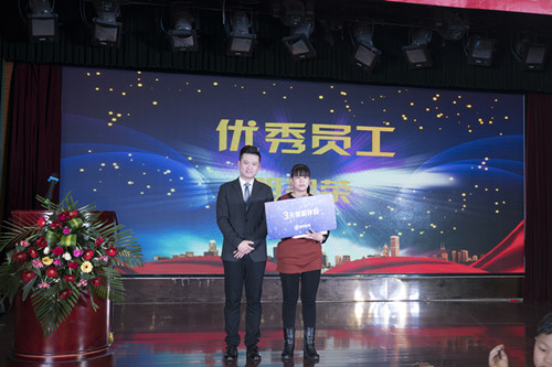 单洪友先生为大地图文优秀员工——阴翠荣颁奖。